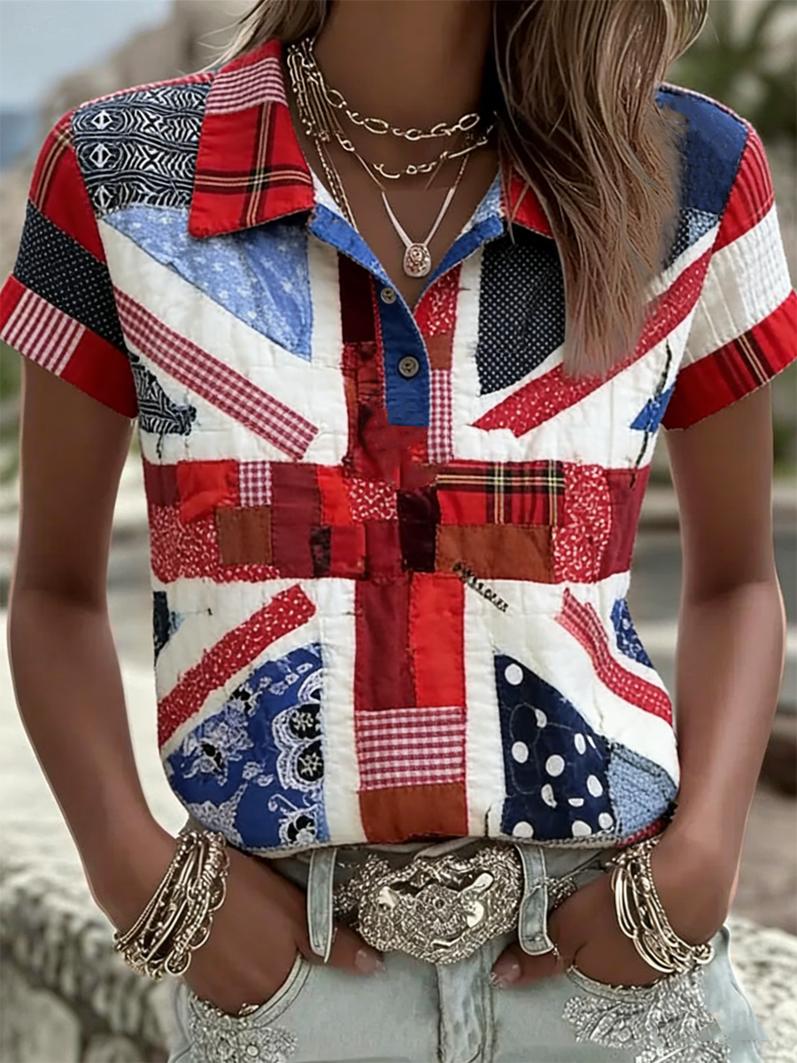 Women's british flag print polo T-shirt