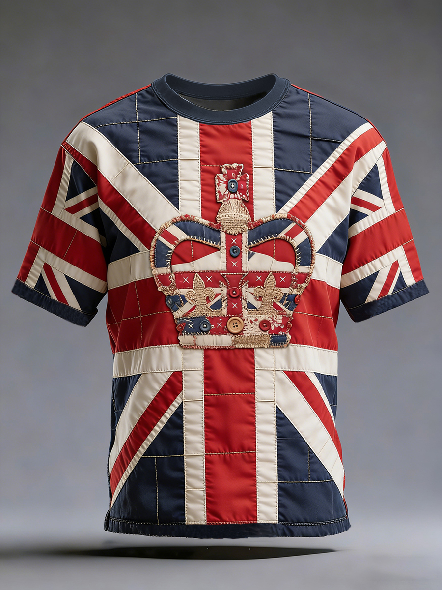 Men's Vintage UK Flag Art Printed Short Sleeve T-shirt
