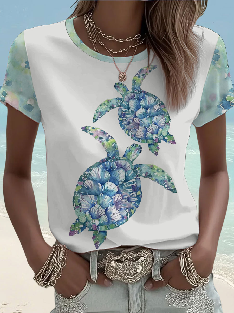 Women's Cute Sea Turtle Print Casual Half-Sleeve Shirt