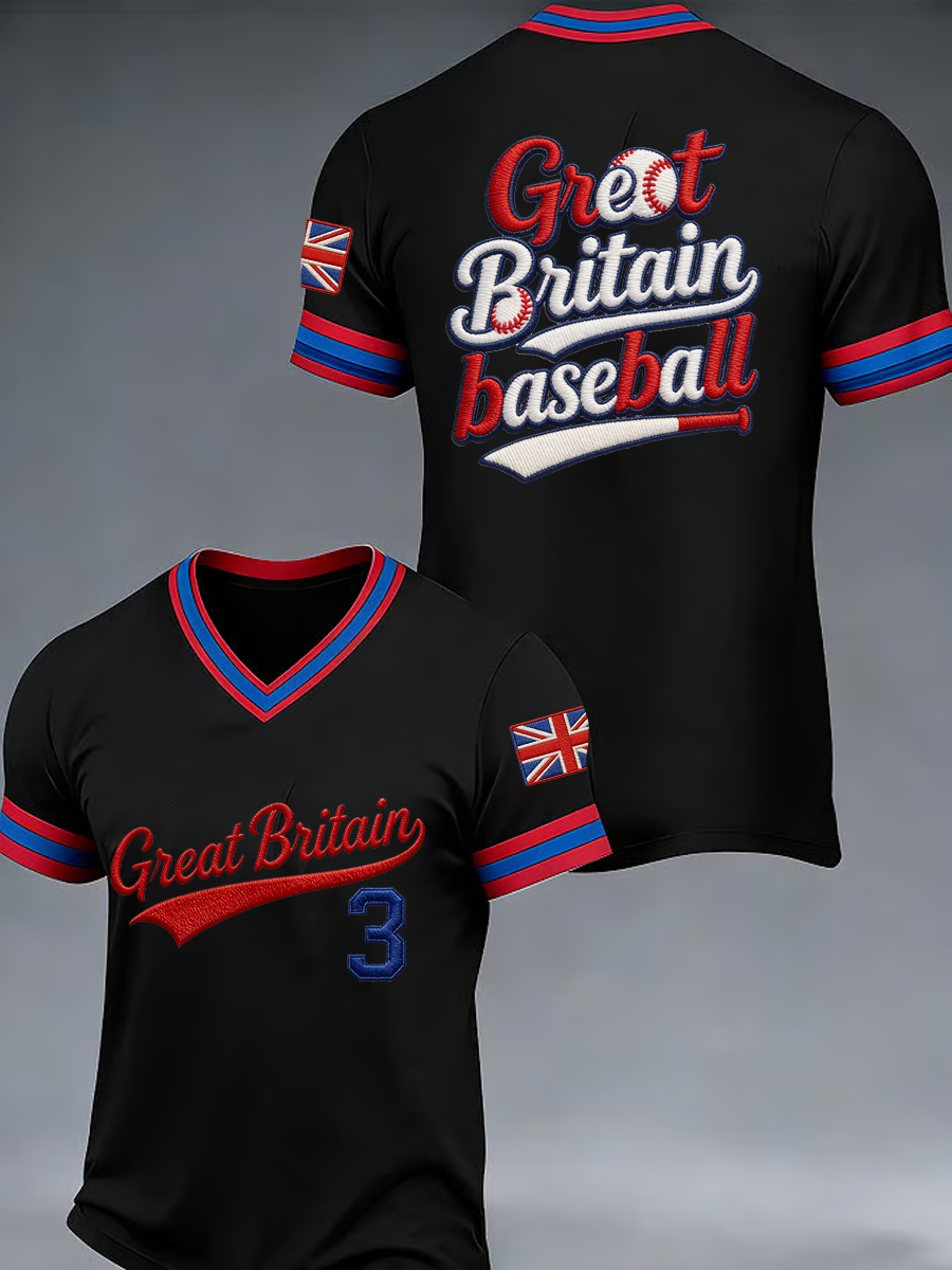 Men's Britain Baseball Peinted V-neck T-shirt
