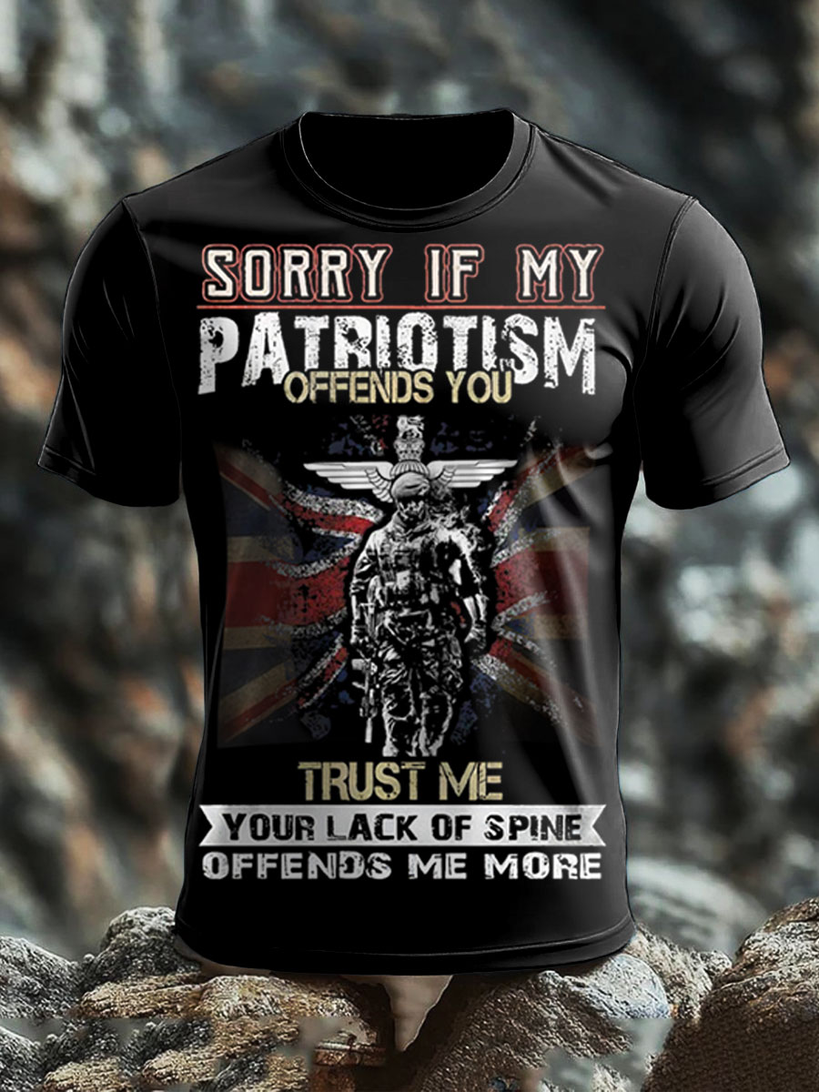 Men's British Veteran Printed imitation cotton short-sleeved T-shirt