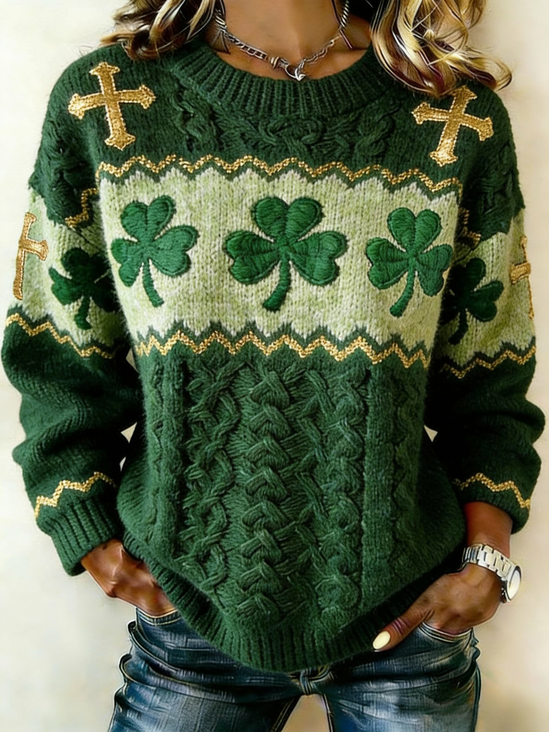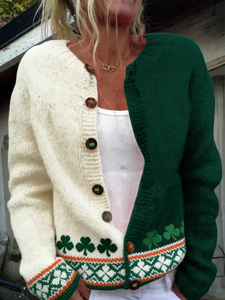 Women's St. Patrick's Day Print Cardigan-Style Knit Jacket