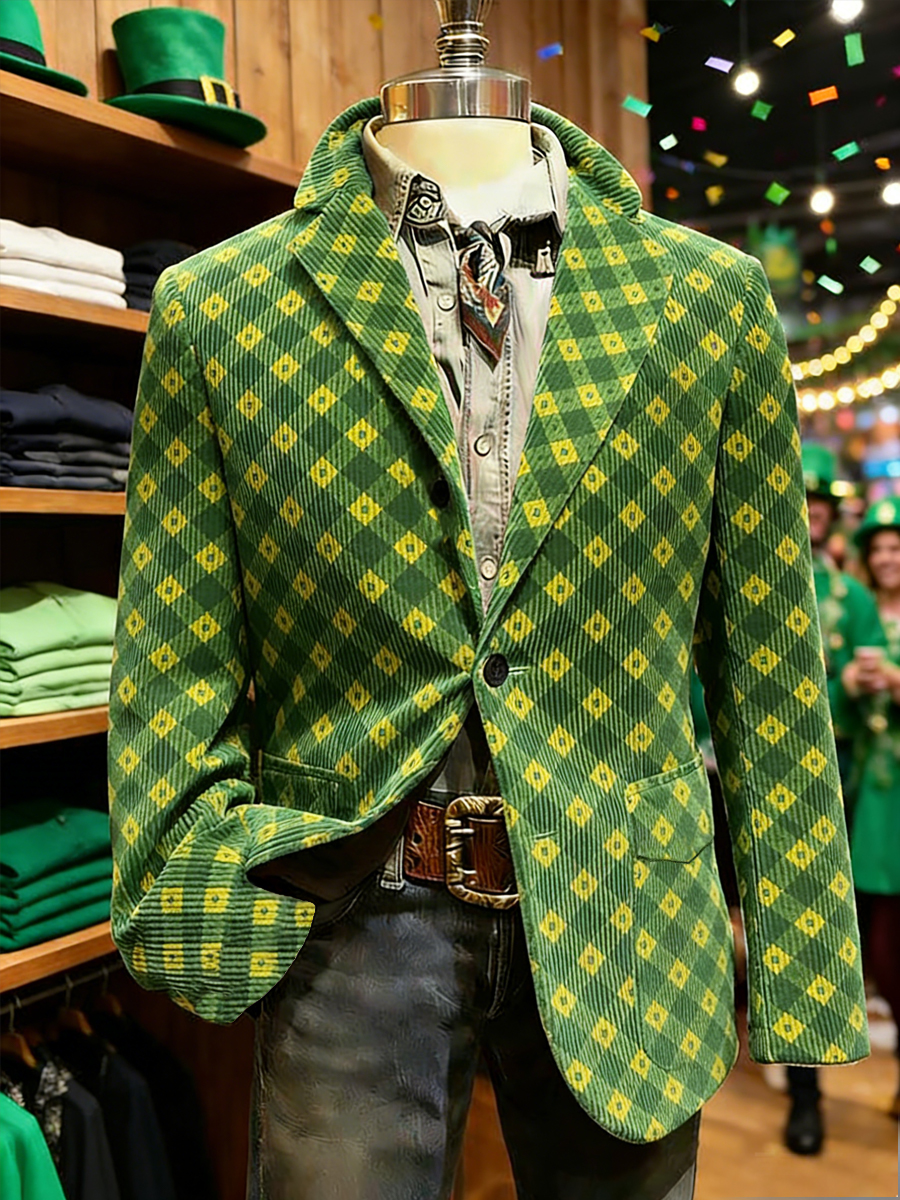 Men's St. Patrick's Day Print Casual Lapel Suit