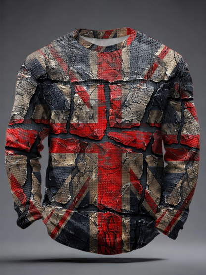 Men's British Fiag print Waffle Long Sleeve T-Shirt