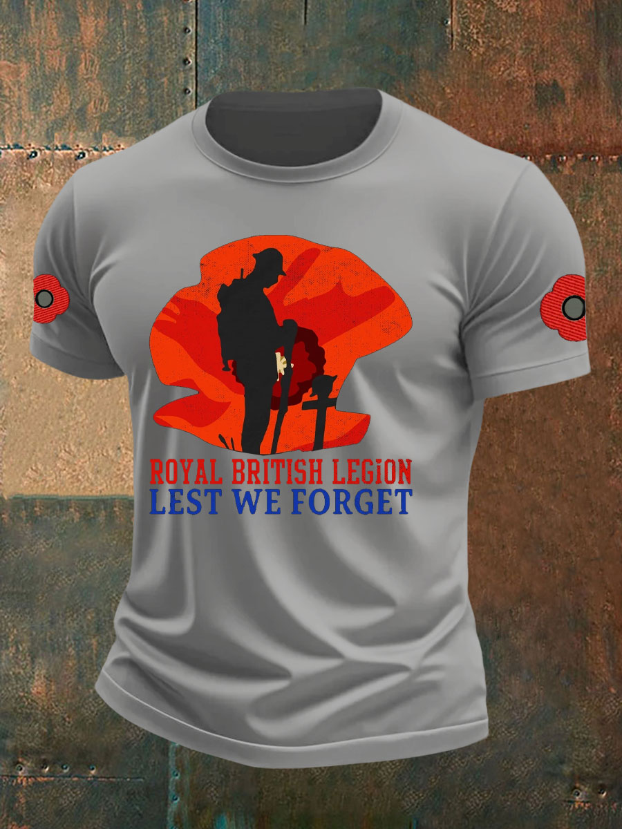 Men's British Veteran Printed imitation cotton short-sleeved T-shirt