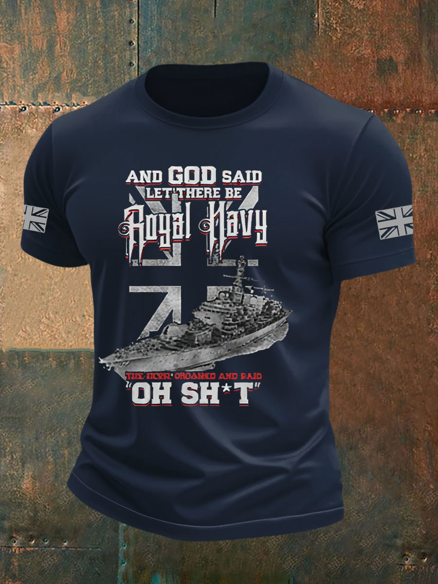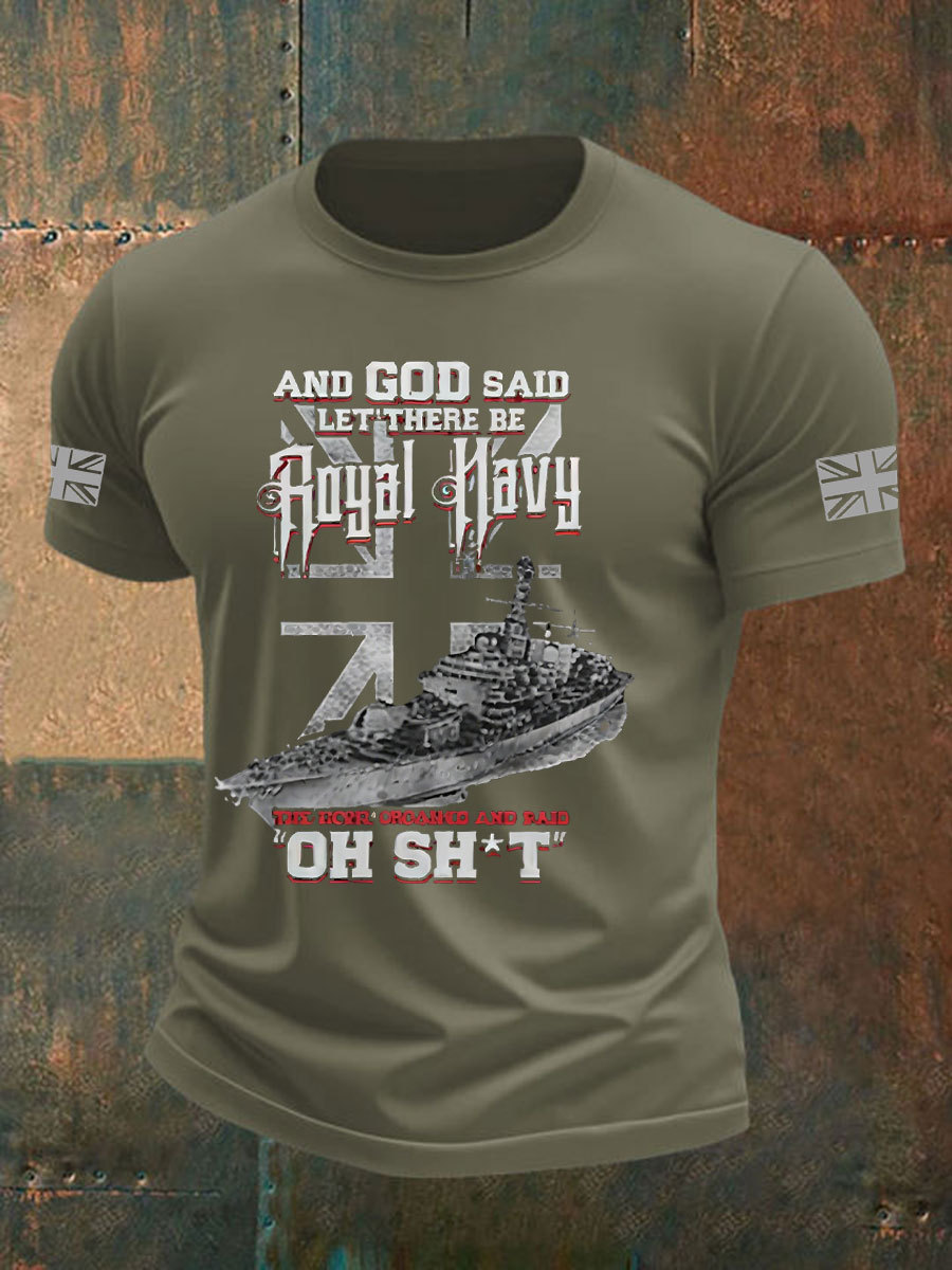 Men's British Veteran Printed imitation cotton short-sleeved T-shirt