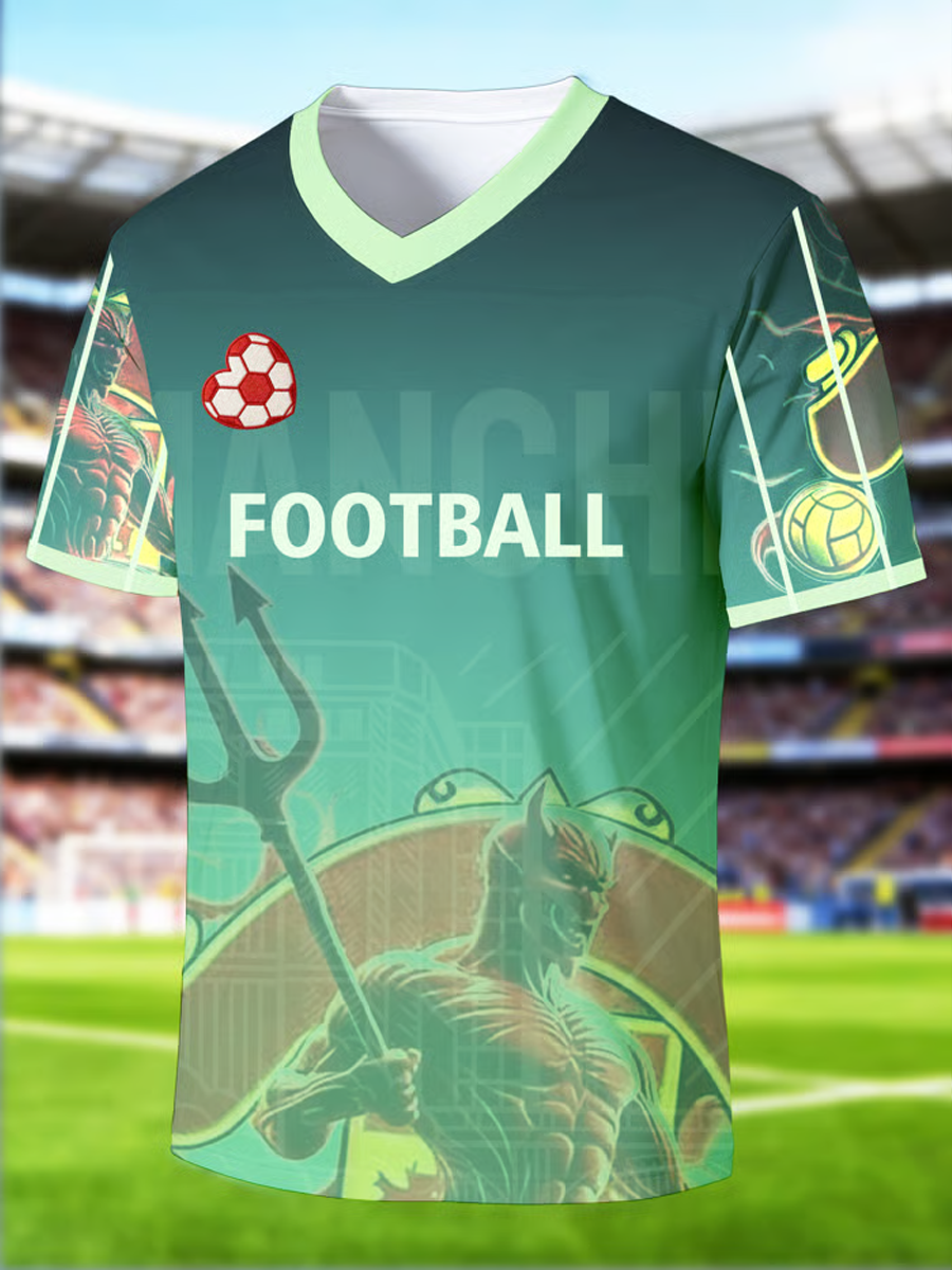 Men's Football-Themed Printed V-neck T-shirt