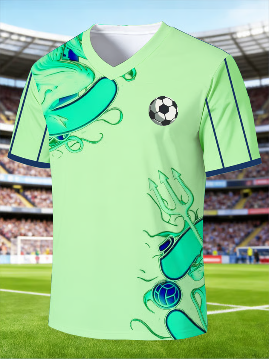 Men's Football-Themed Printed V-neck T-shirt