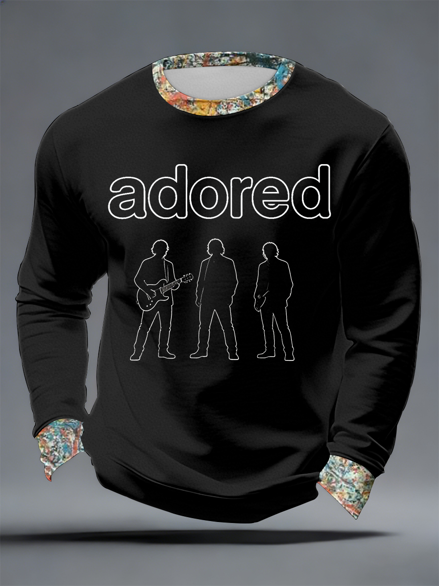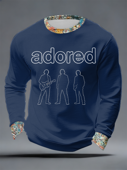 Men's Lemon Roses Music Lover Printed Crew Neck Sweatshirt