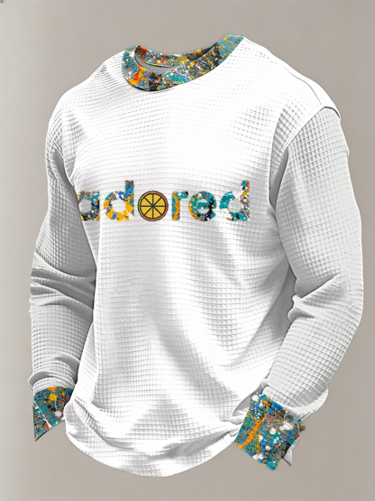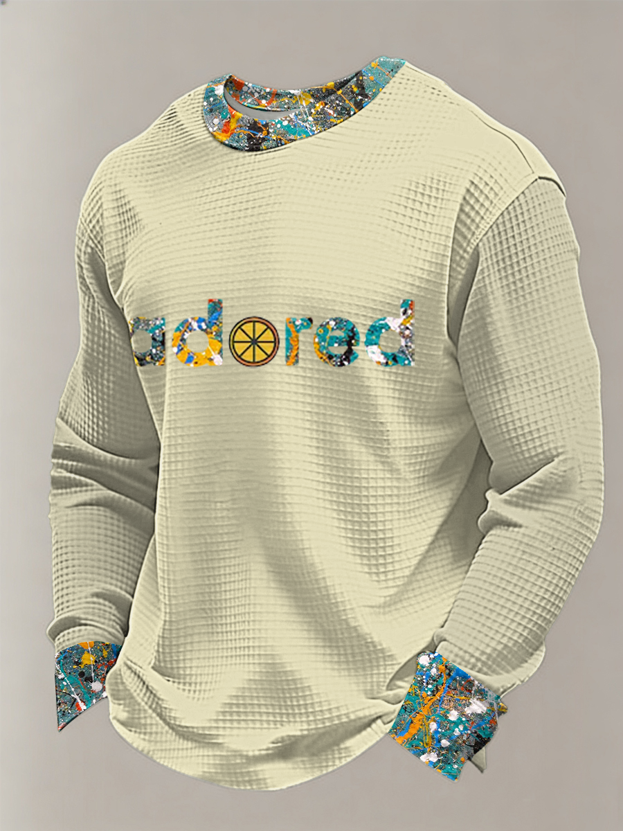 Men's Lemon Roses Music Lover Printed Waffle Long Sleeve Top