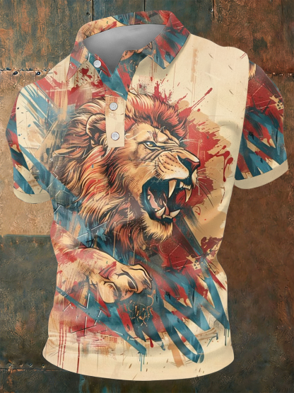 Men's lion print polo shirt