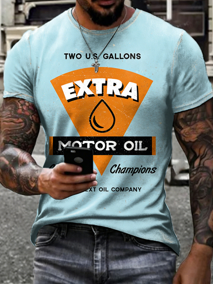 Men's Retro Motor Oil Poster Print Short Sleeves T-shirt
