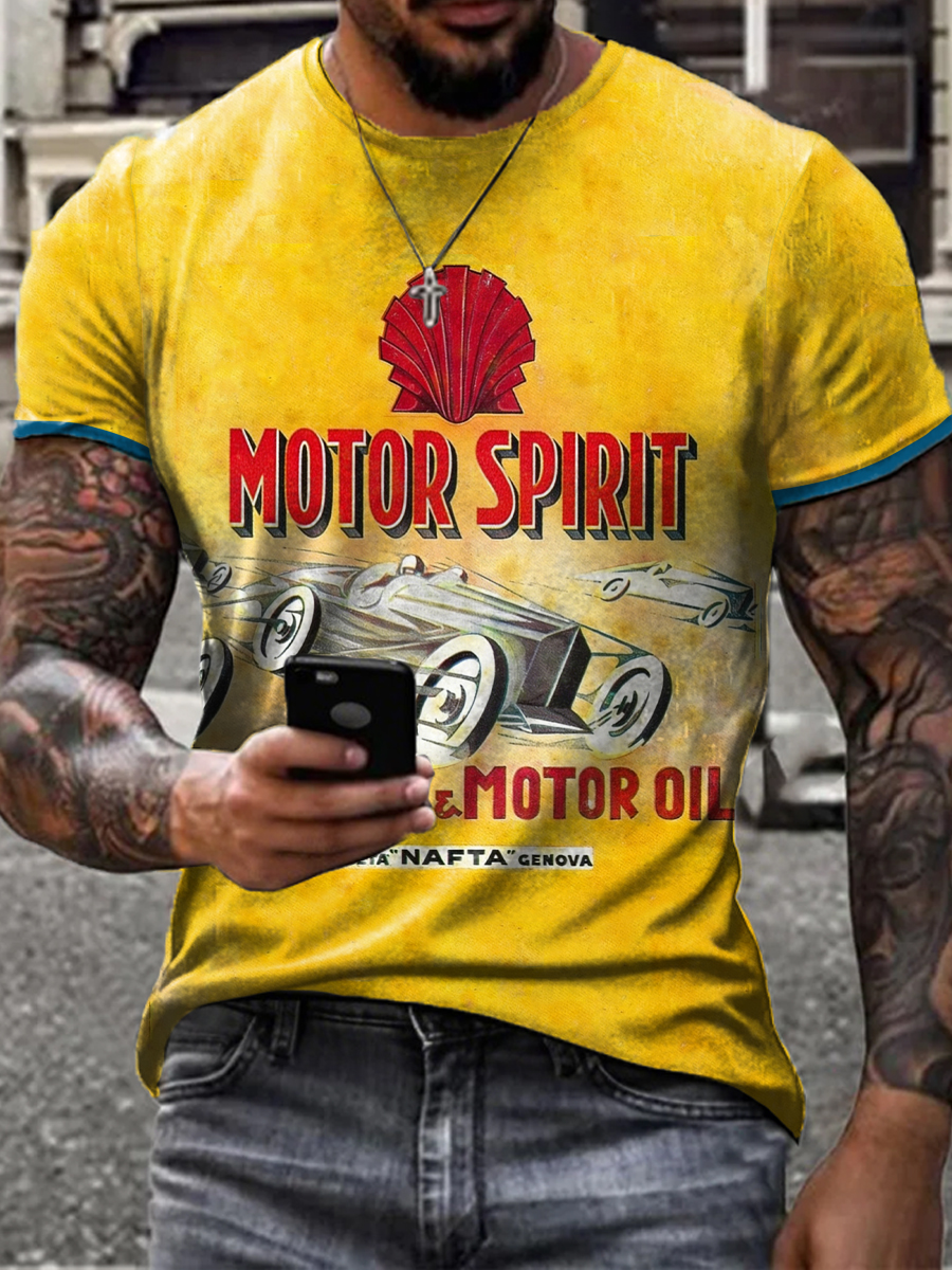 Men's Retro Motor Oil Poster Print Short Sleeves T-shirt