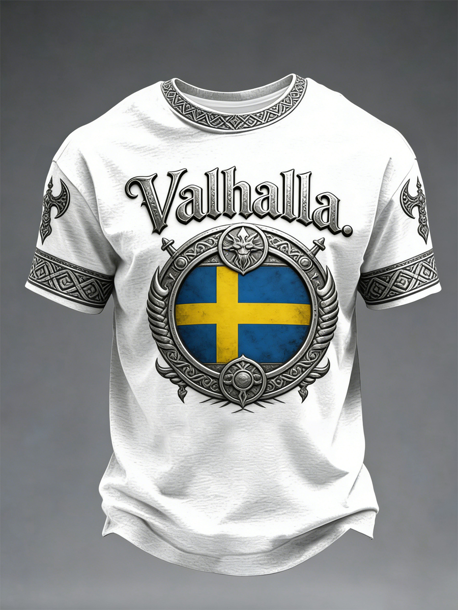 Men's Swedish Viking-style Valhalla Printed T-shirt