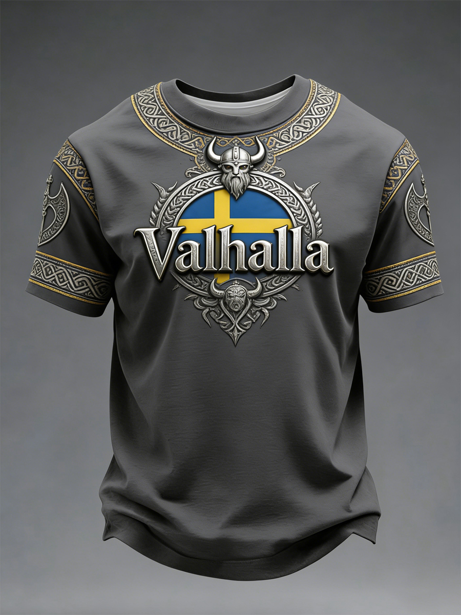 Men's Swedish Viking-style Valhalla Printed T-shirt
