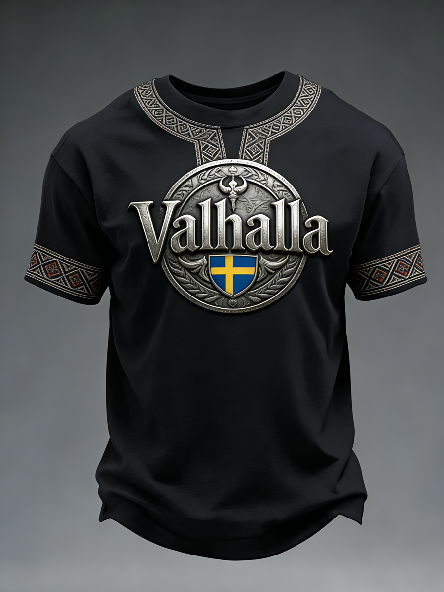 Men's Swedish Viking-style Valhalla Printed T-shirt