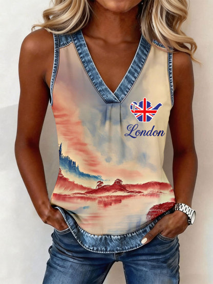 Women's British Flag London V-Neck Tops