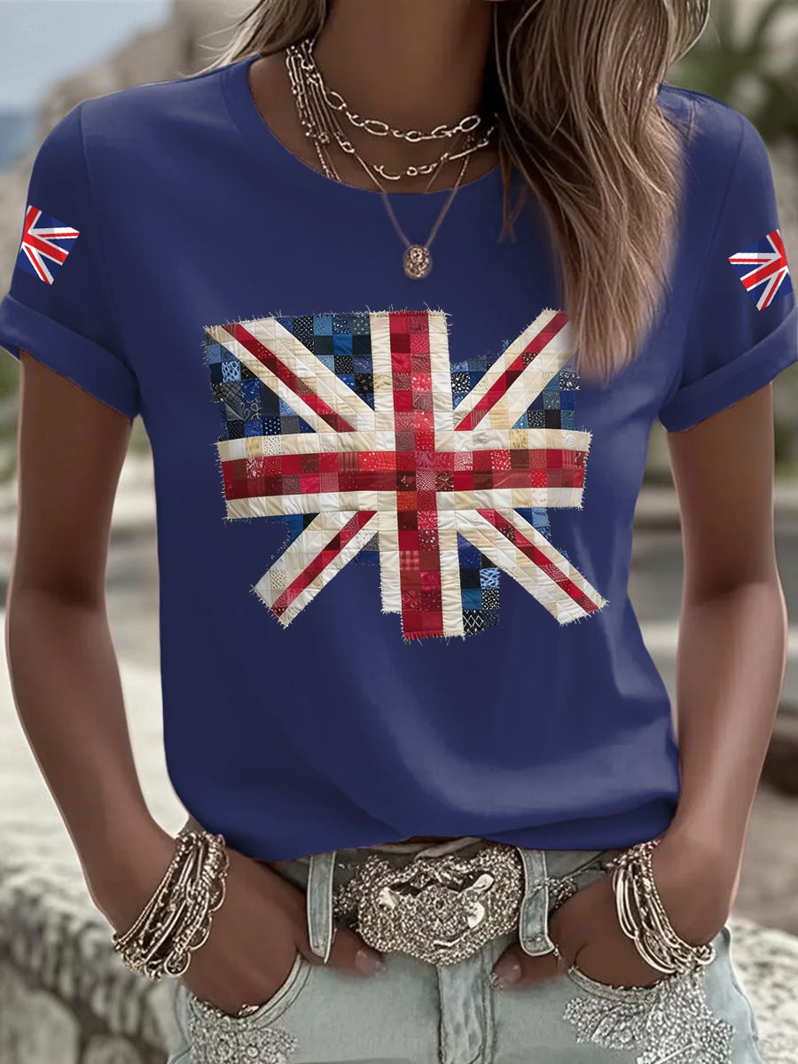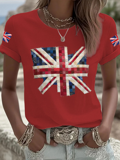 Women's british flag print Iron On Short Sleeve T-Shirt