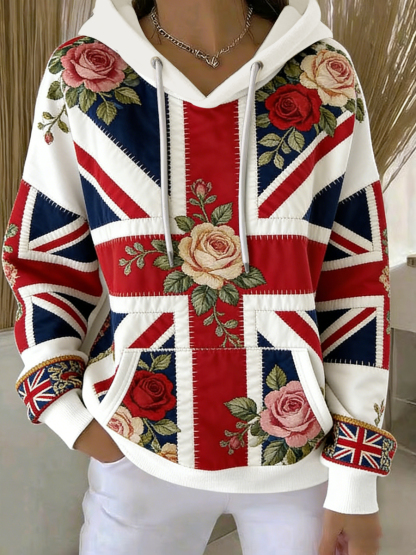 Women's British style Plants Flowers Print Casual Hoodie