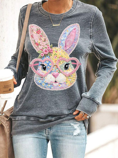 Women's Easter Floral Bunny Patchwork Print Casual Sweatshirt
