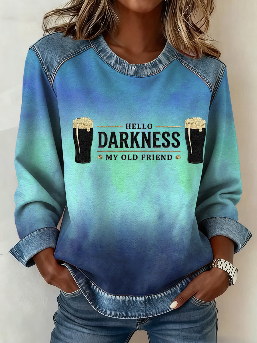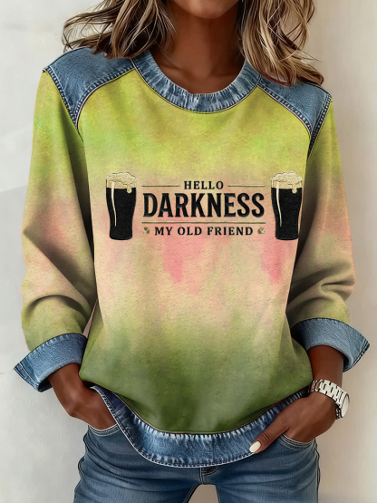 Women's Hello Darkness My Old Friend Denim Patchwork Top