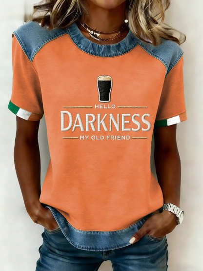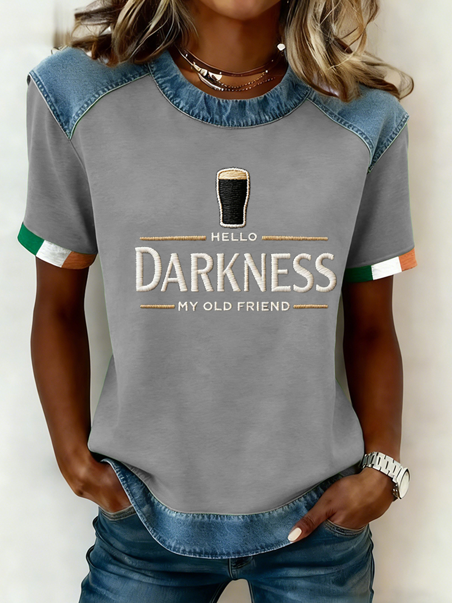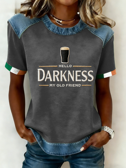 Women's Hello Darkness My Old Friend Patchwork Top