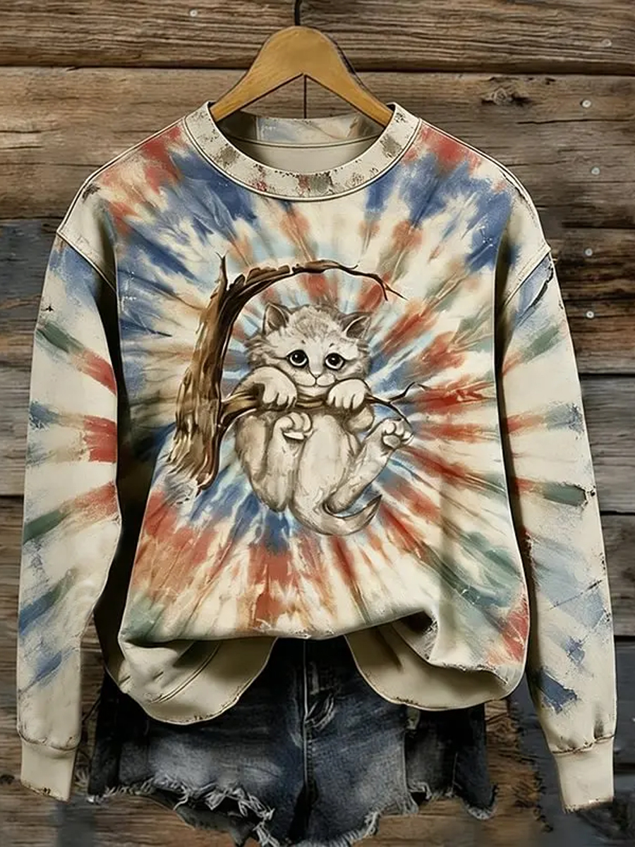Women's Opalite Kitten In Tree With Tie Dye Art Sweatshirt